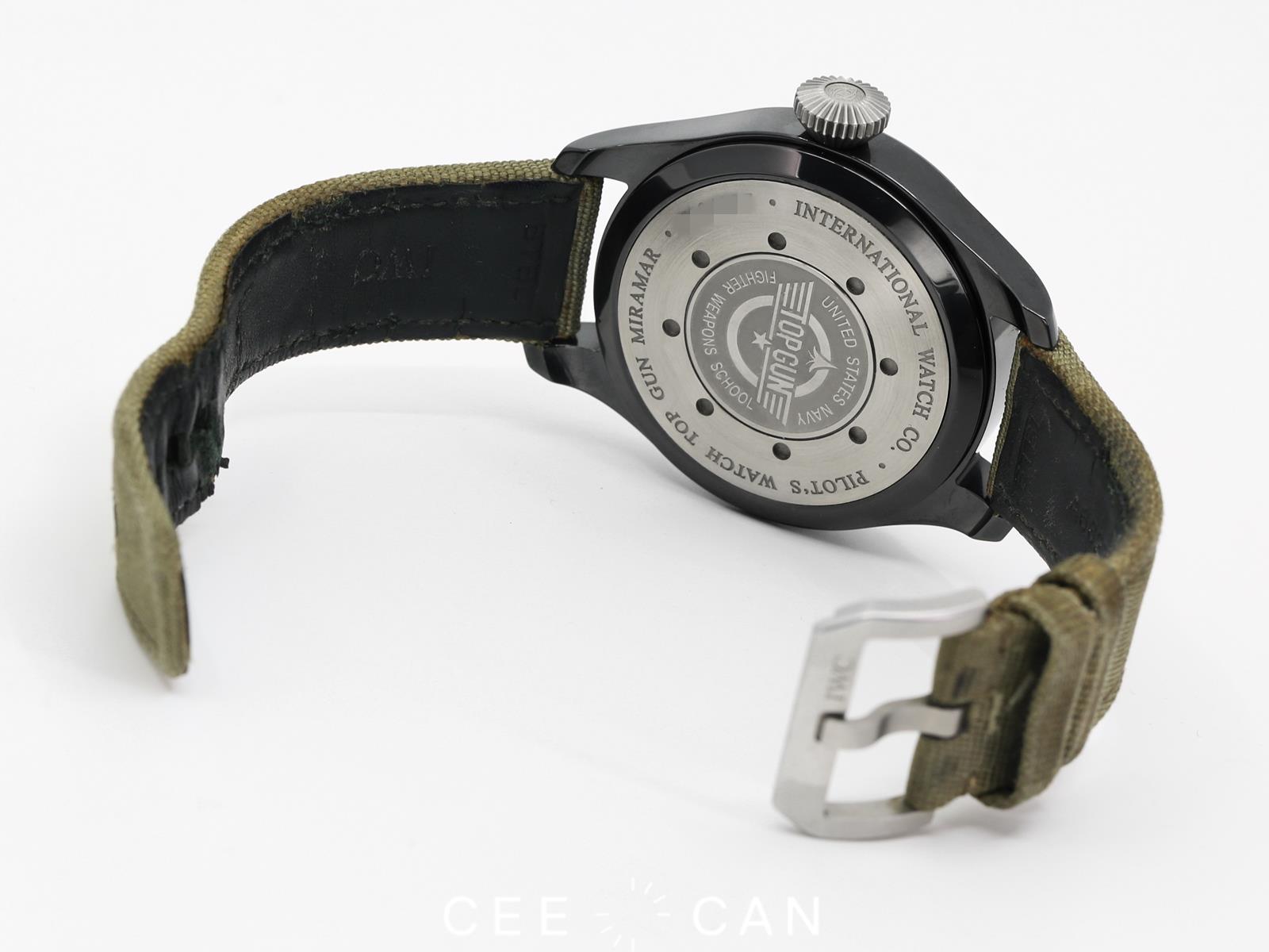 48mm Glossy black ceramic case with titanium caseback and crown. Anti-reflective coated sapphire crystal. Anthracite grey dial with red inner circle for hour markers. Matte black hands with old-radium colour luminous. Power reserve indicator at 3. Date window at 6. IWC in-house automatic movement Cal.51111 with 7-days power reserve. Original fabric strap is heavily used with some damages. IWC titanium buckle. The watch is in very good condition with some light scratches on the case back only. Watch only. No box, no warranty card.