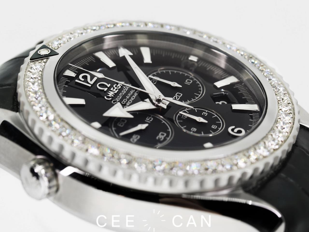 45mm stainless steel case and solid caseback, unidirectional rotating bezel with 45 finely set IF-VVS diamonds with Omega certificate, total 2.65 carat. Black dial with luminous silver hands and hour markers. Date window at 4.5. Omega cal.3313 Co-axial automatic chronograph movement with 52-hour power reserve. Original black alligator strap with steel folding clasp. The watch is overall in excellent condition with only a few hairline scratches near the lug. Comes with a wooden box, hangtag, user manual, warranty card(2013) and certificate.
