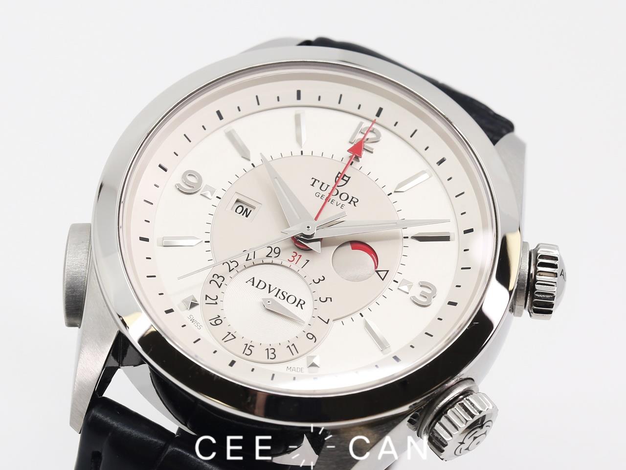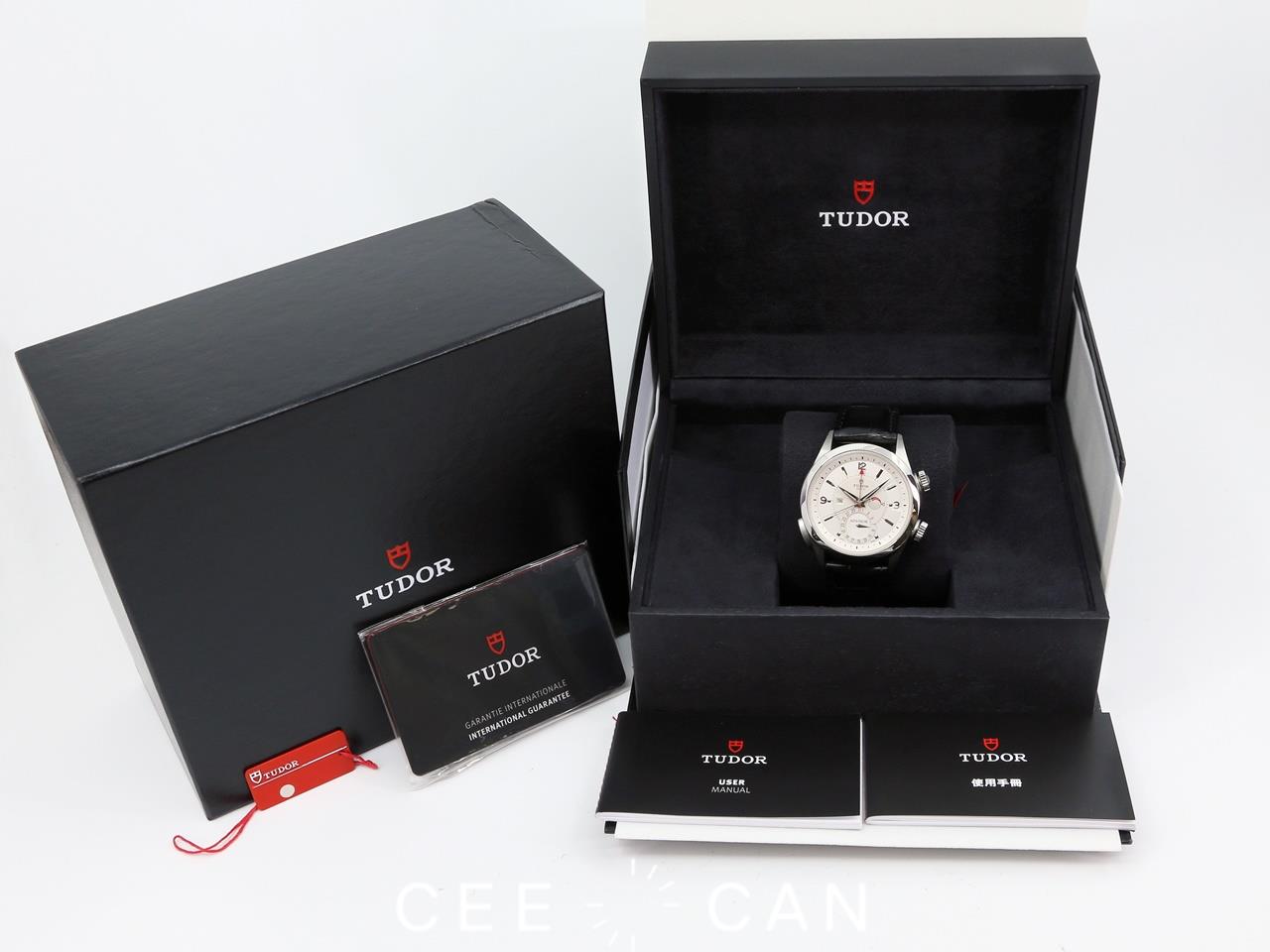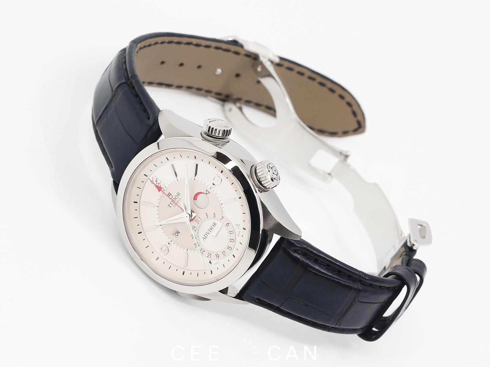 42mm 鈦金屬(中層錶殼)與鋼組成的錶殼,密底蓋。錶冠刻有ADVISOR及帝舵表玫瑰標誌。圓形藍寶石水晶玻璃,銀色錶盤。3時位置附響鬧動力儲備顯示,6時位置設有日曆盤,9時位置設有響鬧開闢。響鬧自動上鏈機芯T401,動力儲備約42小時。原裝鱷魚皮帶配以不銹鋼折疊錶扣。此錶整體狀況良好, 錶殼有花痕。附原裝錶盒,說明書,掛牌及保用證。